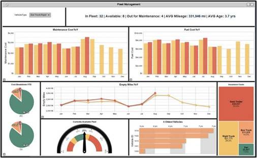 Dashboards: a standalone visual that can be used as an application. They occupy a larger space or full screen. The data in the dashboards primarily consist of metrics, key performance indicators (KPIs) and textual information. A well-designed dashboard allows decision makers to see the most relevant data that reflect business status and support decisions. It is a highly summarized and centralized snapshot that saves a user’s time by eliminating the need to run multiple reports or get data from different sources. Dashboards has been expanded to 3 different types: